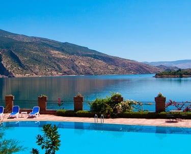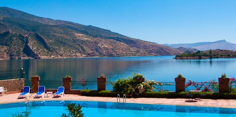 🌄 Bin El Ouidane Lake – Located just 45 km from Azilal, this serene lake is surrounded by the majestic Atlas Mountains. It’s ideal for boating, fishing, and picnicking with stunning views of the mountains and clear waters.